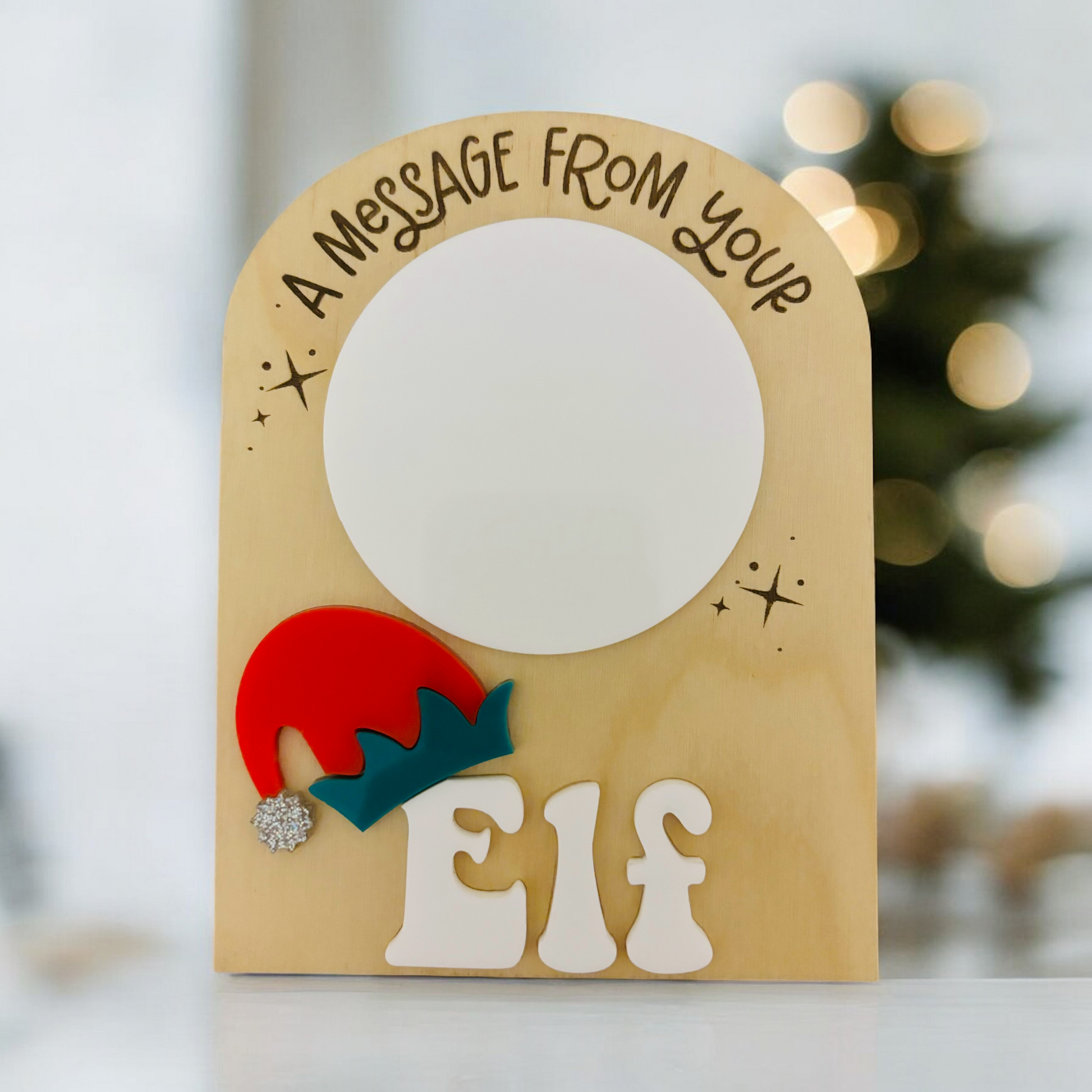 Experience the magic and wonder of the holiday season with our handmade "A Message From Your Elf" boards. Let your Elf communicate with your little ones in a unique and heartfelt way. Bring joy and excitement to your home this holiday season with this special Keepsake.
