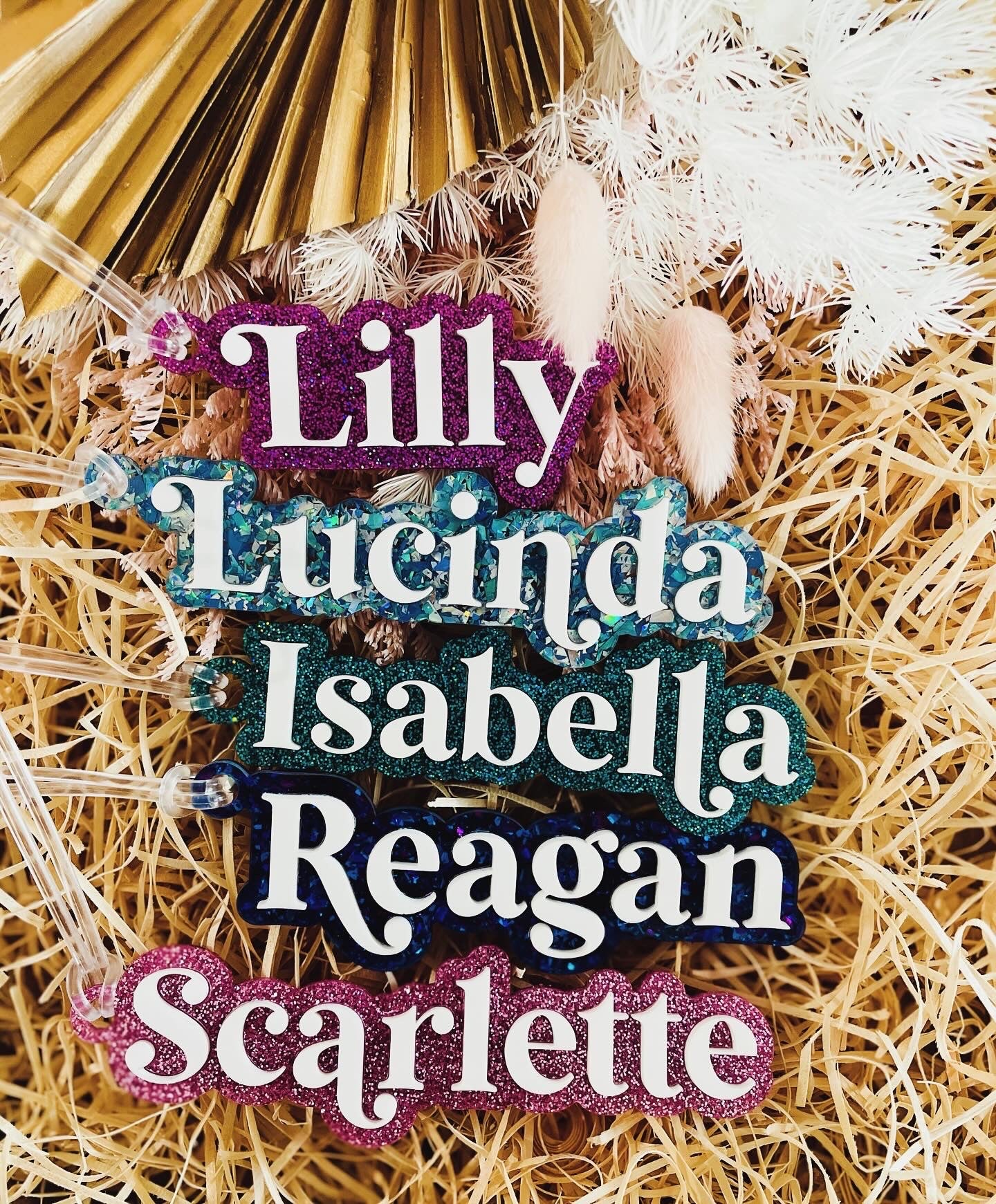Elevate your child's backpack game with our Acrylic Bag Tag! Made from durable acrylic, this bag tag features a fancy font that adds a touch of personalisation. Stand out from the rest and easily identify your child's bag with our stylish and functional bag tag. Each Bag tag comes with a silver or gold clasp to easily attach to any school bag.