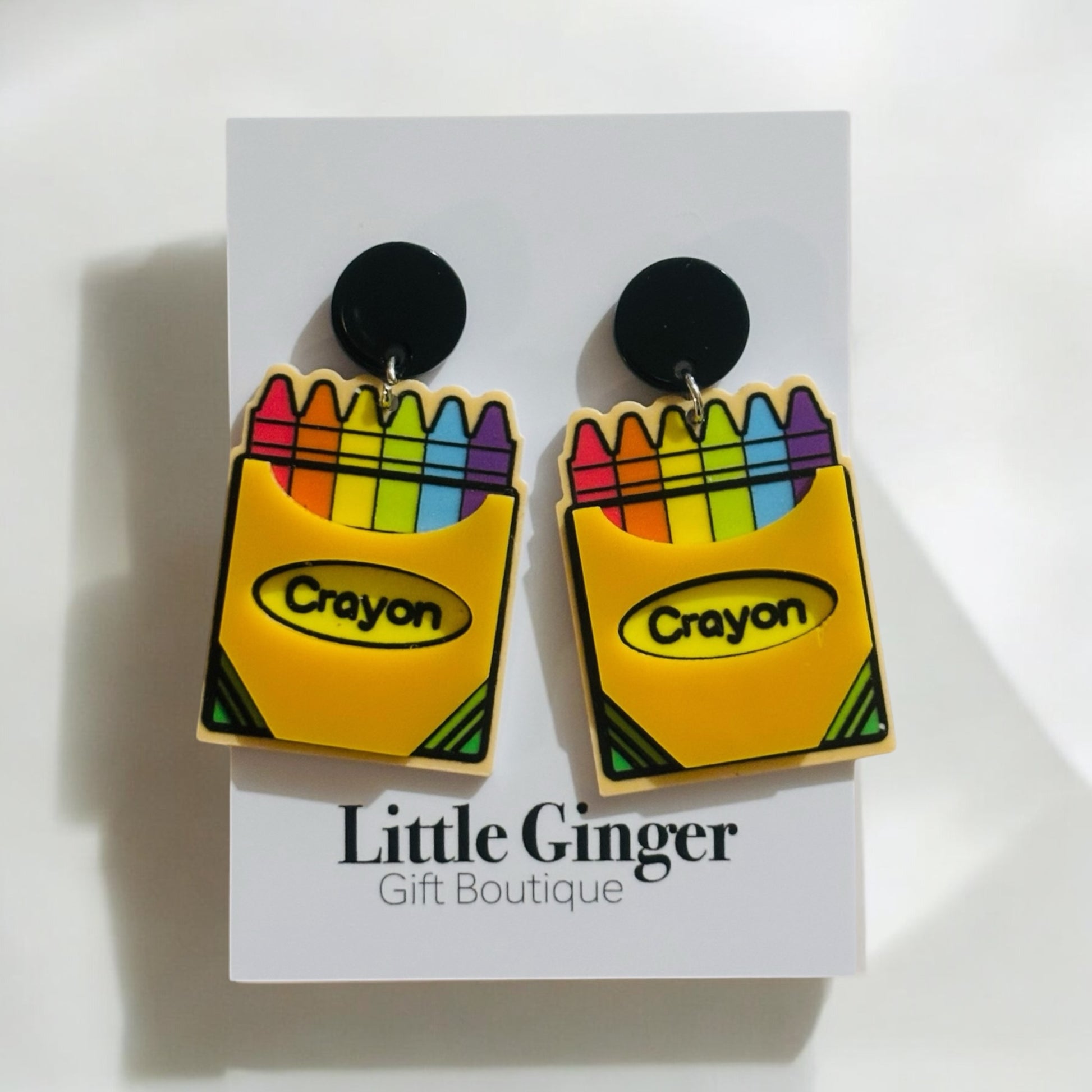 Add some artistic flair to any outfit with our Acrylic Crayon Dangle Earrings! These earrings are not only a perfect gift for teachers, but their unique design will make you stand out in any crowd. Show off your creativity and love for education with these stylish earrings.