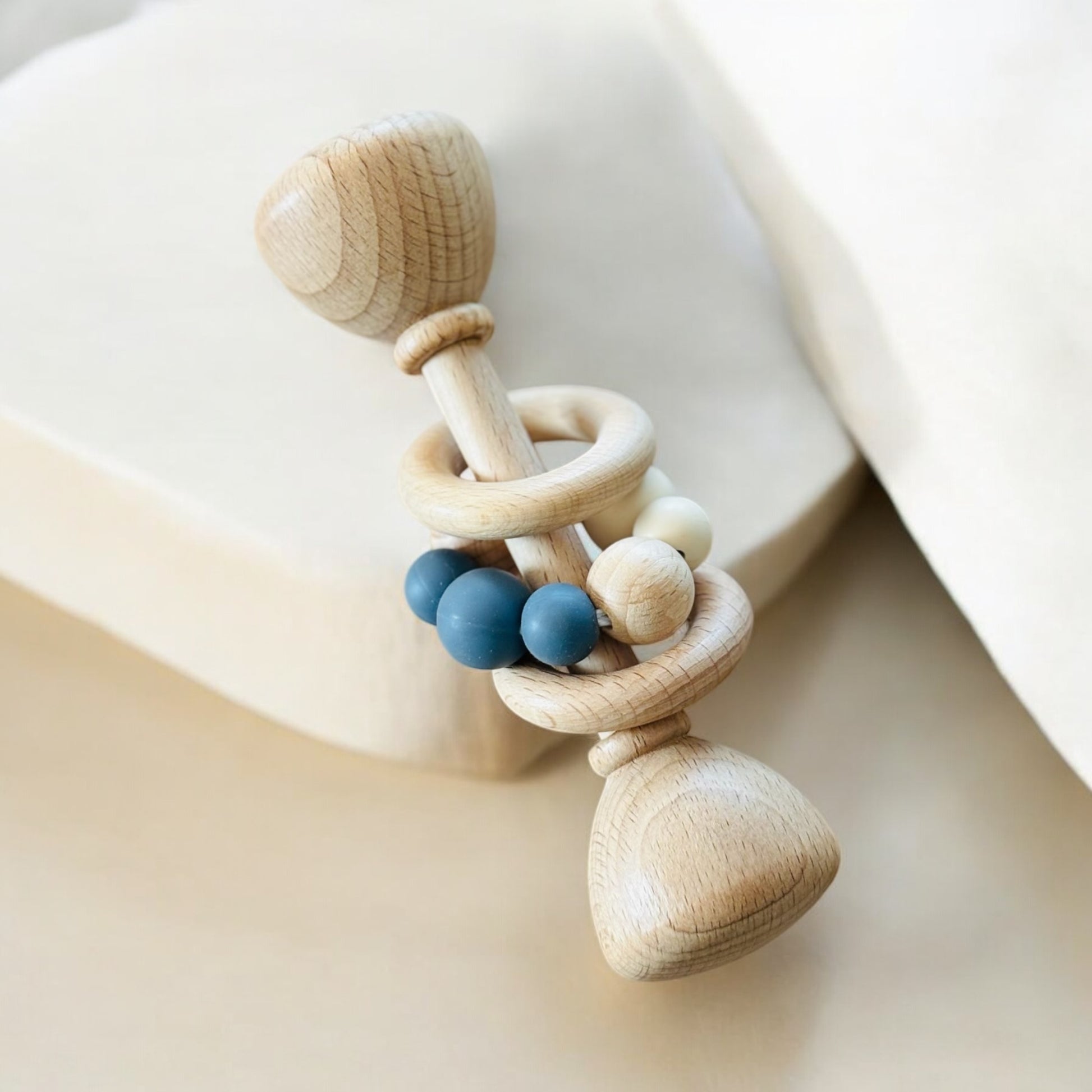 Introduce your little one to the world with our Blue and White Silicone + Birch Wood Teether! Made with blue and white silicone balls and sustainable birch wood, this newborn teether not only soothes sore gums but also promotes early sensory development. Give the gift of comfort and exploration with our one-of-a-kind teether.