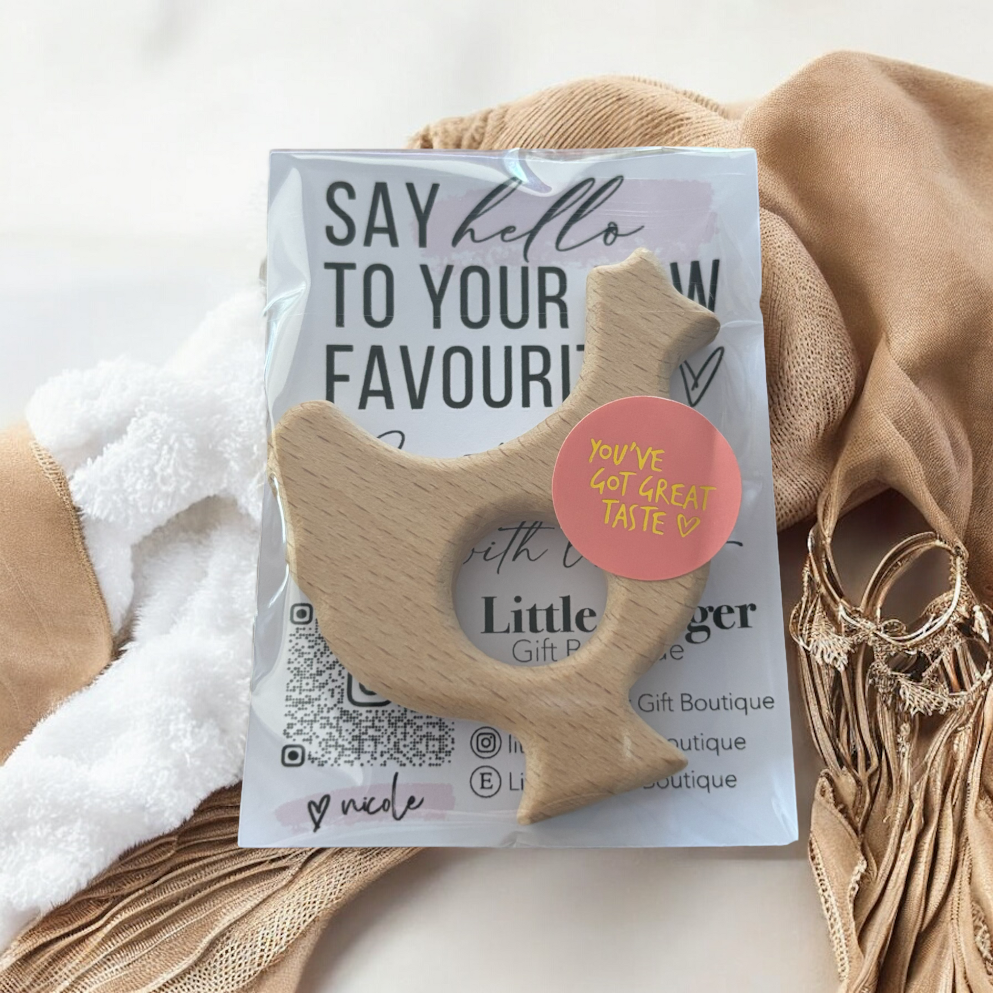 Introduce your little one to the joys of self-soothing with our Chicken Teether made of all-natural birch wood. The unique chicken design is perfect for tiny hands to grip and provides relief for teething discomfort. Allow your baby to explore and experience the texture and sensory benefits of wood!