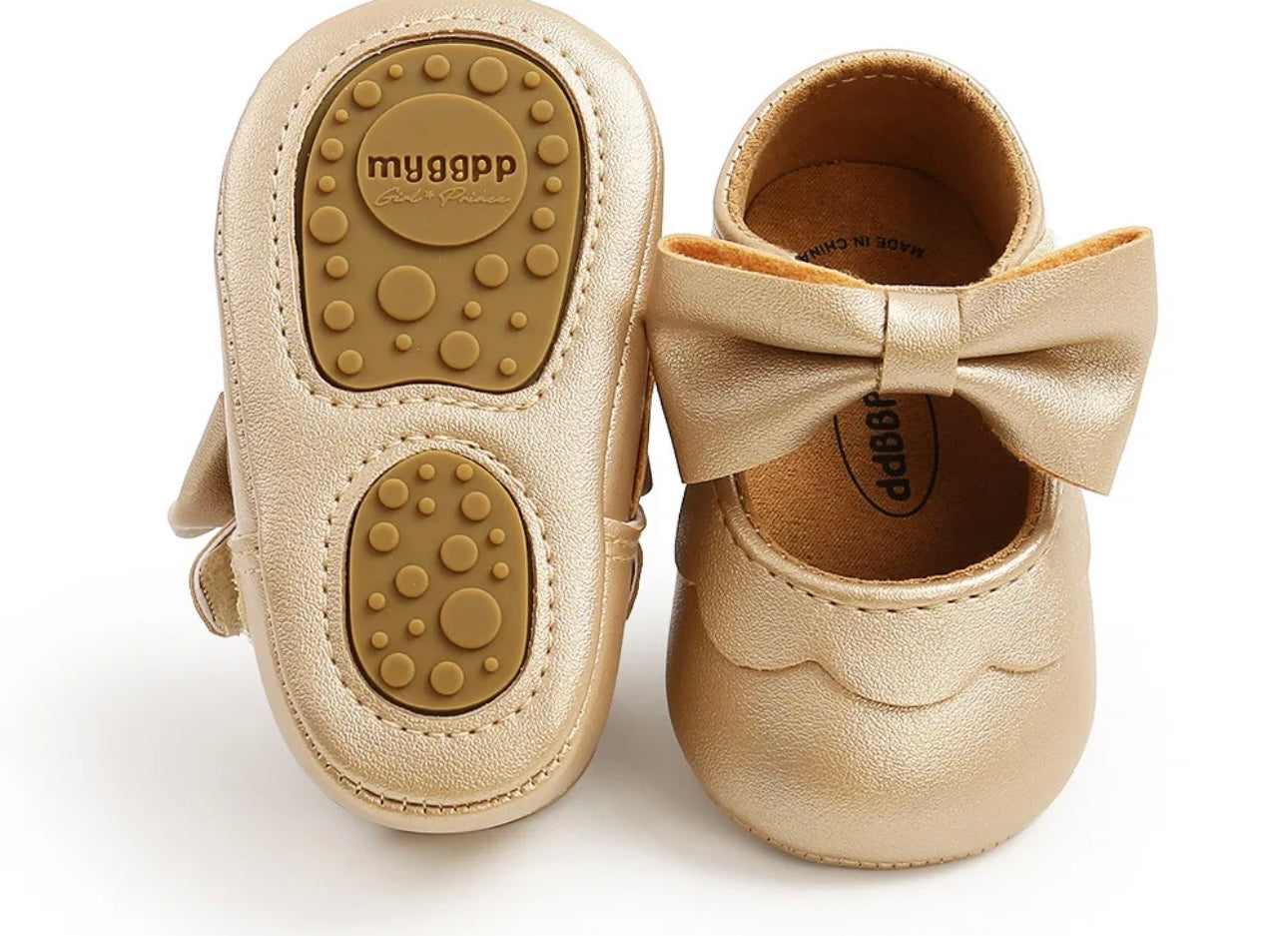 Dress your little one in style with our Gold Bow Pre Walkers! These adorable shoes are perfect for babies aged 0-6 months and feature a beautiful gold bow detail. Keep your baby's feet comfortable and stylish with our Pre Walkers.