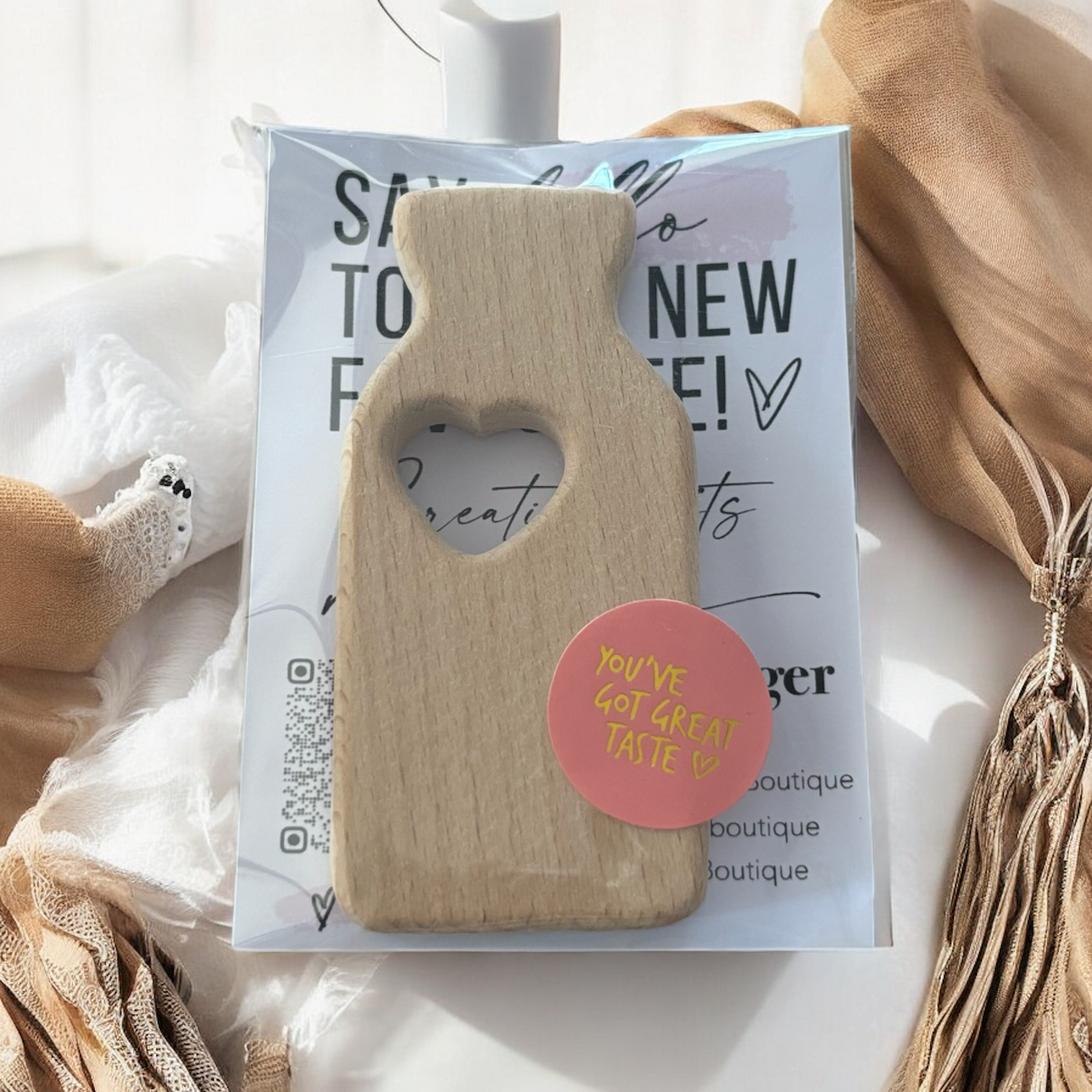 Unleash your little one's teething troubles with our Milk Bottle Teether! Made from sturdy and smooth birch wood, this teether is designed to soothe sore gums and promote healthy jaw development. Say goodbye to plastic teething toys and hello to a natural and soothing option for your baby.