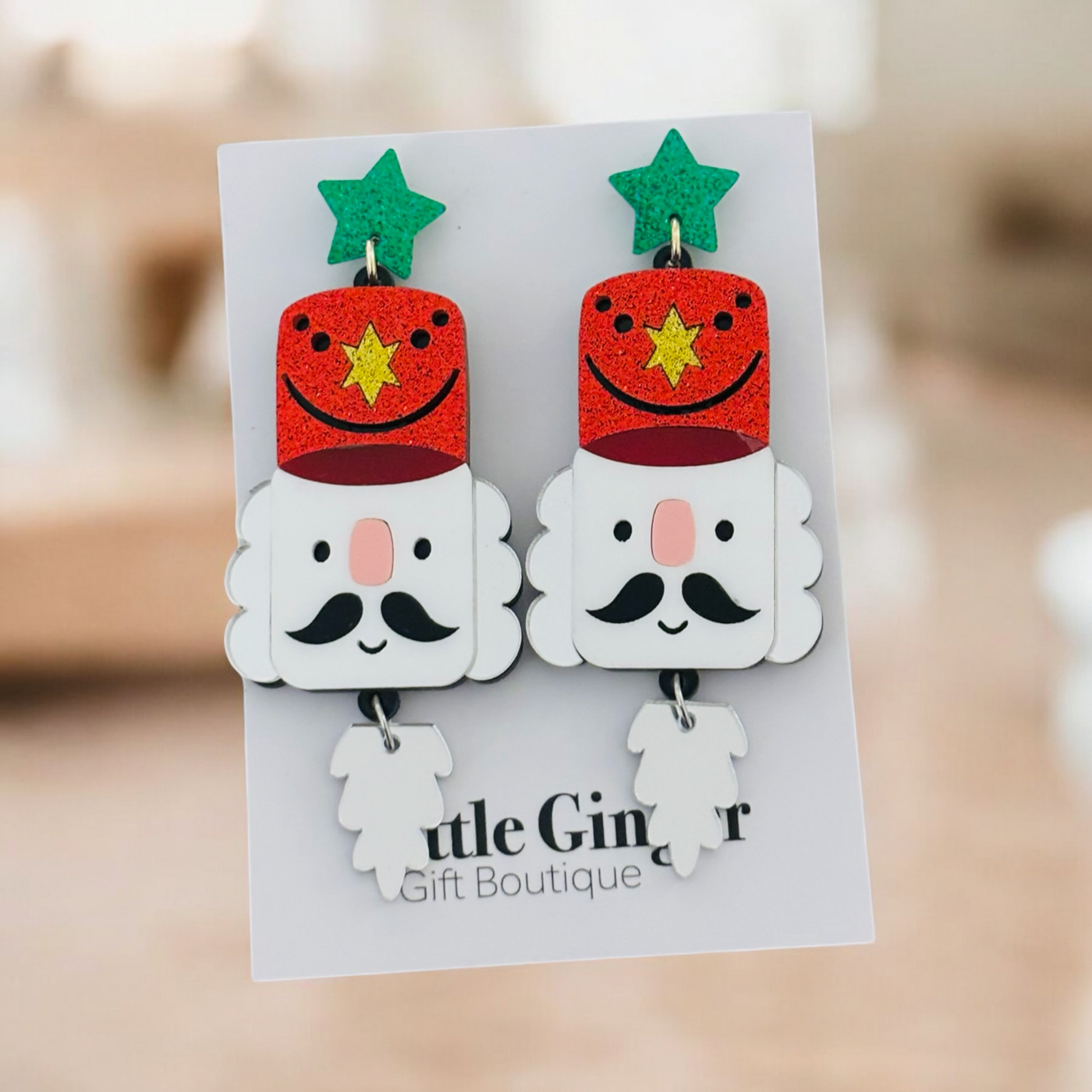 Elevate your holiday style with our Fun Christmas Nutcracker Acrylic Dangles. These lightweight earrings are designed to swing and sparkle, adding a touch of festive charm to any outfit. Perfect for any holiday occasion, they are sure to catch everyone's eye. Upgrade your accessories with these beautiful dangles and sparkle all season long.